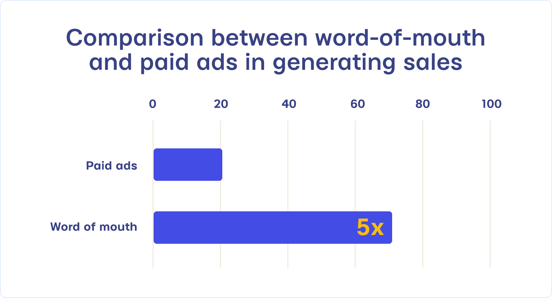 According to McKinsey, word-of-mouth drives from 20% up to 50% of all purchases. People seem to trust the recommendations of friends and influencers when choosing a brand for purchase. Word-of-mouth marketing is a highly influential form of advertising that is efficient and free for brands, generating organic traffic and high conversion rates.